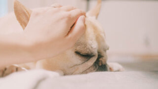 袖が苦手なフレンチブルちゃんでも着れる手編みベスト。